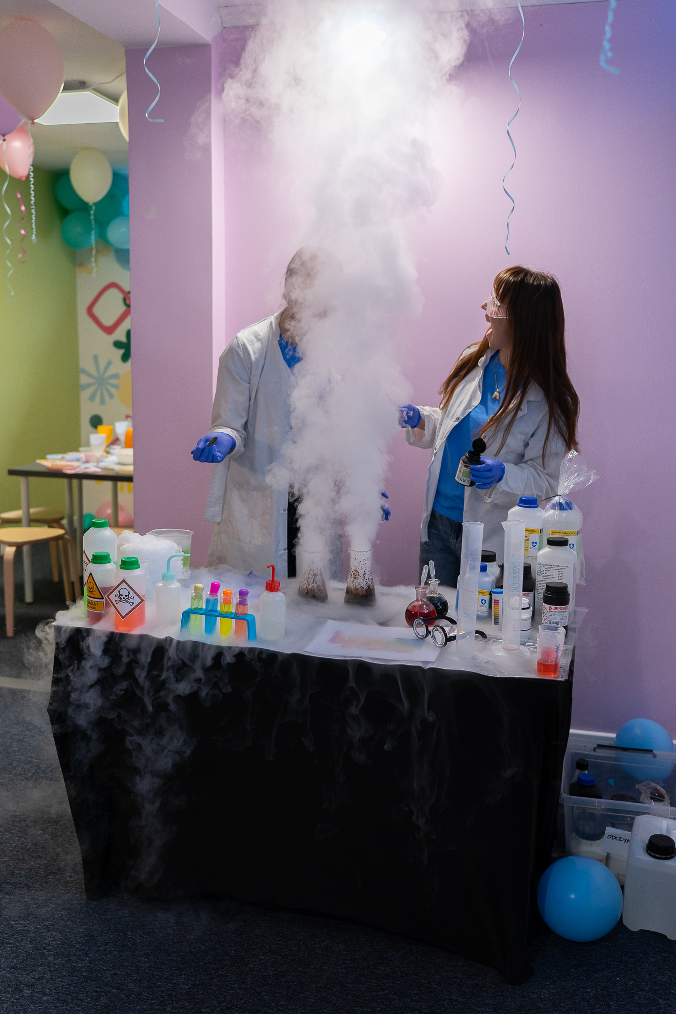To nie tylko świetna zabawa, ale też okazja do nauki przez działanie – dzieci poznają podstawy chemii w praktyce, pracując z bezpiecznymi składnikami pod okiem prowadzącego.